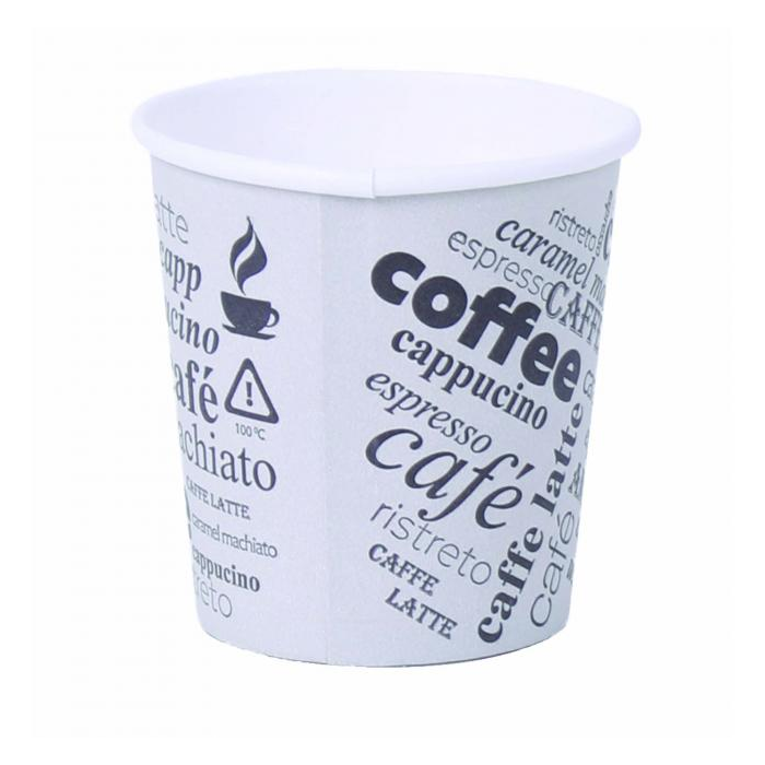 Jednorazové papierové poháre na kávu s motívom. Objem 0,12 l, vhodný pre nápoje s objemom 0,1 l. dodávané v balení po 50 ks.