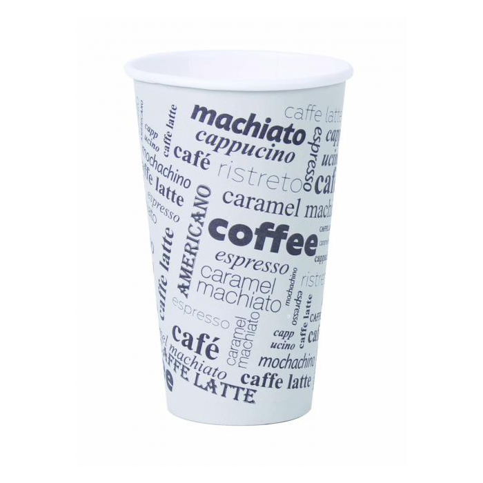 Jednorazové papierové poháre na kávu s motívom. Objem 0,4 l, dodávané v balení po 50 ks.
