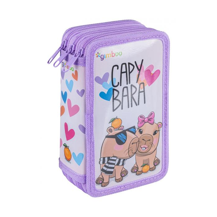 Peračník GIMBOO 3-zipsový plný, Capybara, fialový