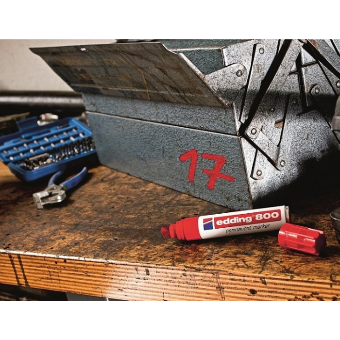 Permanentný popisovač s hliníkovým obalom a vymeniteľnou špičkou. Hrot zrezaný, šírka stopy 4-12 mm. Dopĺňateľný atramentom edding T 25. Väčšie balenie 5 ks. Farba: červená Šírka stopy: 4-12 mm Typ hrotu: zrezaný