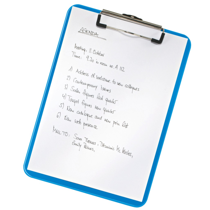Pevná písacia podložka A4 na každodenné použitie v sviežich farbách WOW s dvojfarebným efektom. Silná kovová spona na uchytenie až 80 listov, háčik na zavesenie. Materiál polystyrol. Väčšie balenie 10 ks. Farba metalická modrá.