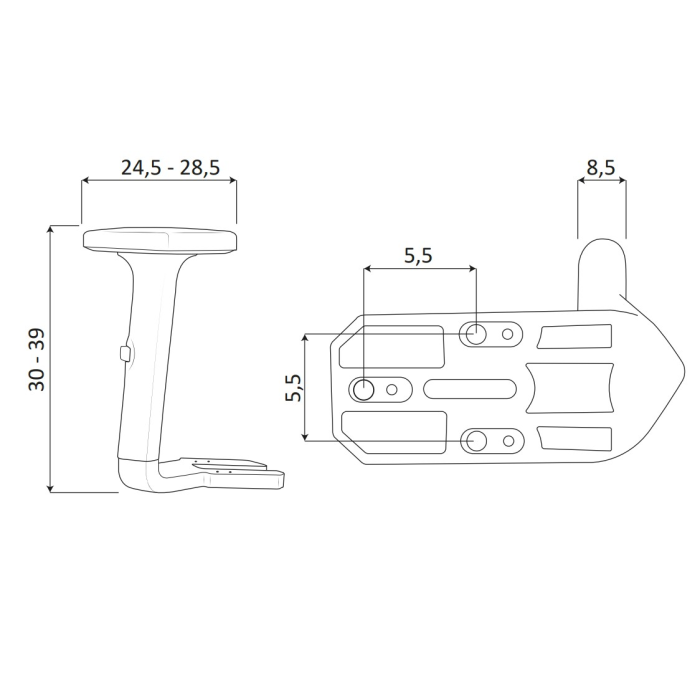 Plastové podrúčky výškovo nastaviteľné 2D k stoličke 1080 Mek, 1140 Asyn, 1290 Pu, 1380 Flute, 1390 Tulio, 1540 Asyn, 1580 Gala, 1640 Athea, 1680 Sinko, 1690 New Pure, 1750 Skill, 1850 Omnia, 1870 Motion, 1880 Armin, 1930 Eclipse, Panther Asyn, Rossa