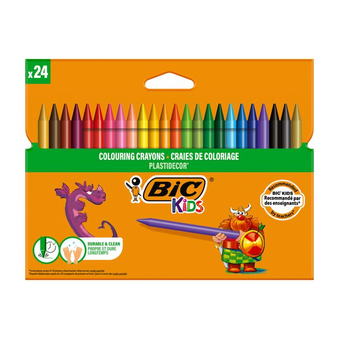 Ultra odolné plastové voskovky proti lámaniu, nešpiniace ruky a vhodné pre pravákov a ľavákov.Dĺžka pastelky 153 mm, priemer 7,6 mm. V balení 24 kusov.
