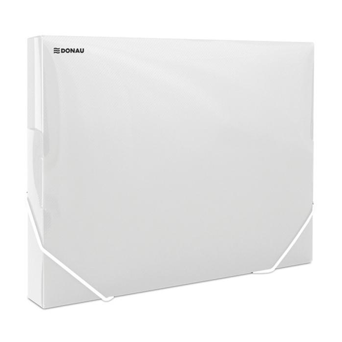 Plastový box s tromi chlopňami vyrobený zo silného polypropylénu 700 µm, uzatvárateľný gumičkou. Kapacita cca 300 listov. Rozmery (v×hך) 327×250×32 mm. Väčšie balenie 20 ks.