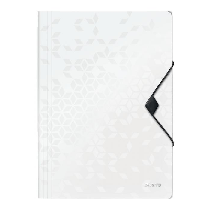 Trojchlopňový obal na dokumenty do formátu A4 z polypropylénu. V dizajne rady WOW v žiarivých farbách. Uzatváranie uchytením na gumičku. Kapacita 150 listov. Väčšie balenie 10 ks. Farba biela.