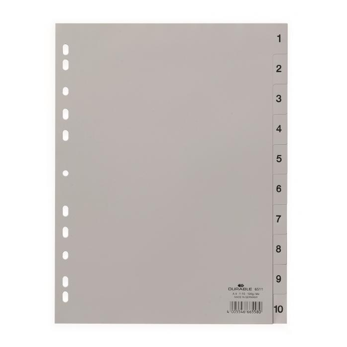 Plastový rozraďovač DURABLE 1-10 sivý