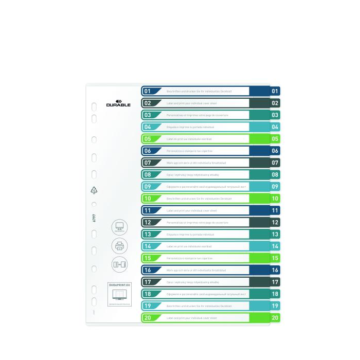 Plastový rozraďovač DURABLE 1-20 potlačiteľný farebný