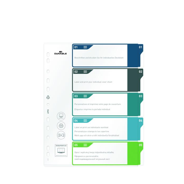 Plastový rozraďovač DURABLE 1-5 potlačiteľný farebný