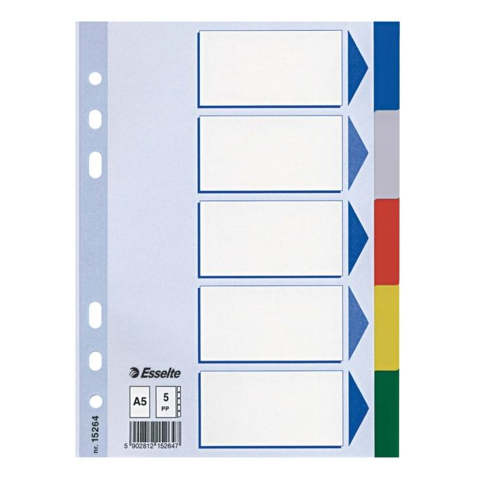 Plastový rozraďovač Esselte A5 5-dielny farebný