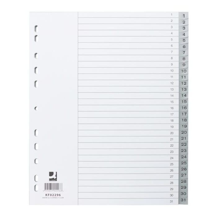 Plastový rozraďovač Q-CONNECT 31-dielny maxi sivý