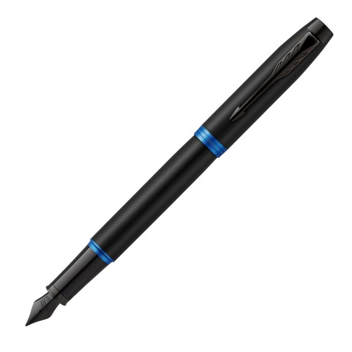 Plniace pero IM Professionals Vibrant Rings Marine Blue - je ideálny partner s neobmedzenými možnosťami. Má matne čierne telo a viečko s výraznými farebnými prstencami modrej farby. Doplnky sú potiahnuté pomocou techniky PVD matne čiernou vrstvou. Hrot zdobený jemnou rytinou je vyrobený z ušľachtilej nerezovej ocele a je tiež potiahnutý matne čiernou vrstvou. Viečko je nasadzovacie. Pero je vybavené systémom na bombičky aj na plnenie konvertorom. Štandardne je v balení 1 bombička, konvertor je nutné v prípade záujmu dokúpiť.