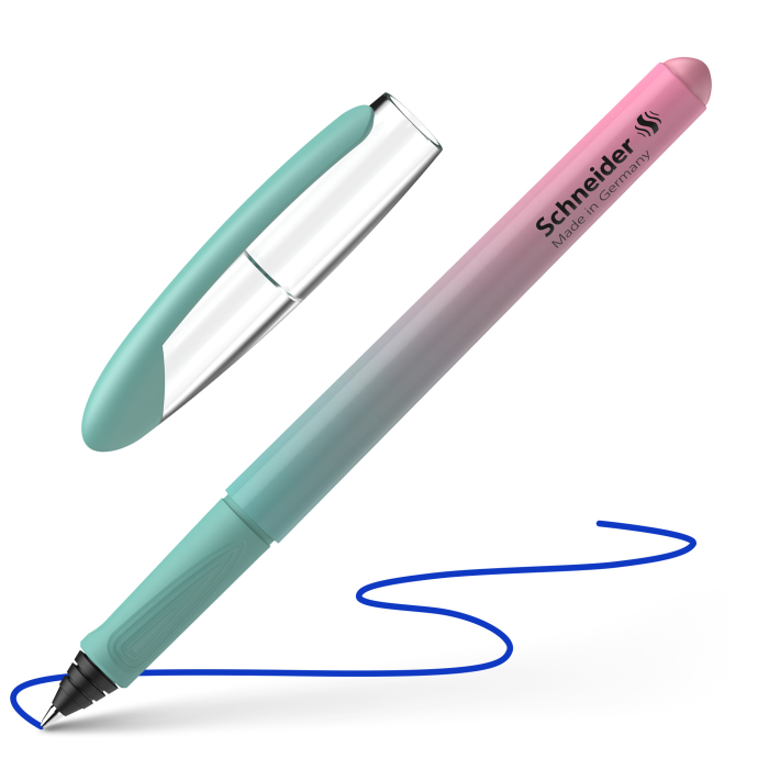 Plniace pero s farebným dizajnom. Užšie tleo pera je vhodné aj do menšej ruky. Ergonomické uchytenie. Rollerový hrot z nerezovej ocele. Do pera sú určené štandardné bombičky. Plniace pero je určené pre ľavákov aj pravákov.