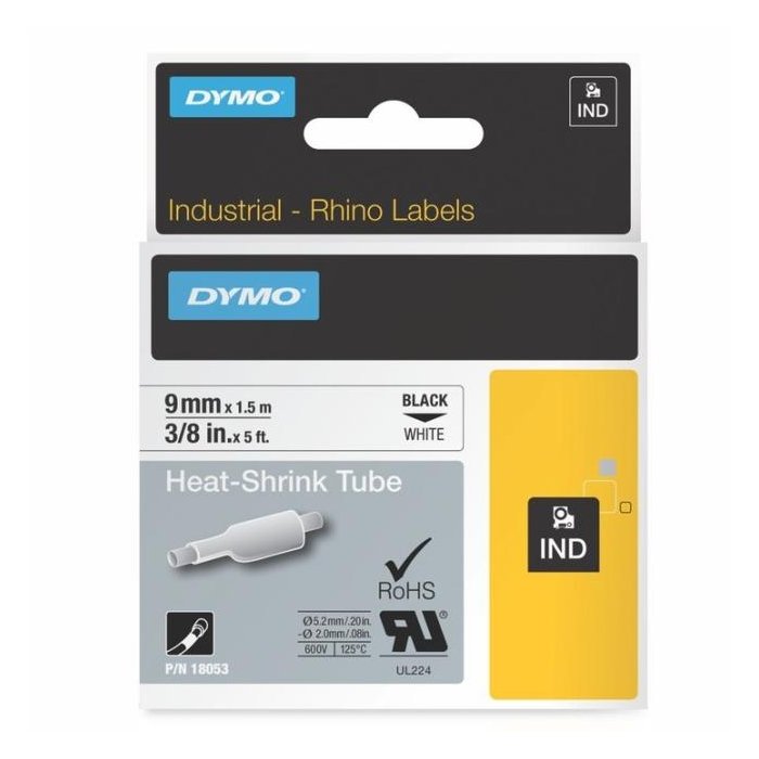 Zmršťovacia bužírka Dymo 18053 do popisovačov štítkov Dymo. Kazeta obsahuje zmršťovaciu bužírku, ktorá je vhodná pre trvalé označenie a zároveň ochranu vodičov a káblov. Bužírky sú vyrobené z polyolefínu, sú ohňovzdorné a pomer zmrštenia je 3:1. Sú balené v štandardných kazetách a možno ich potlačiť v niektorom zo štítkovačov Dymo.