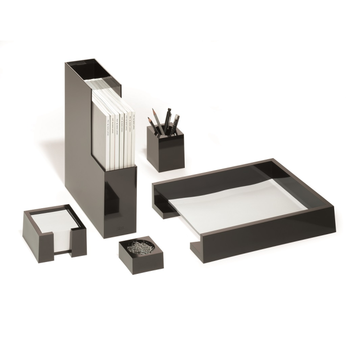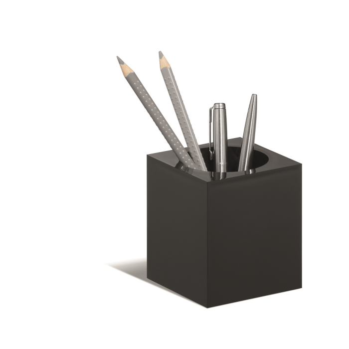 Pohárik na odkladanie pier, ceruziek a zvýrazňovačov. Rozmery 75 × 90 × 75 mm.