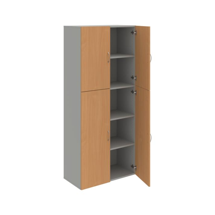 Kombinovaná skriňa - dvere/nika. Dôraz na funkčnosť a cenu. Kvalita a variabilita s nízkymi obstarávacími nákladmi. Materiály výrobcov z Európskej únie. Obojstranne pohľadový chrbát. Zabezpečenie políc proti náhodnému vysunutiu. 45 rôznych prvkov pre Vaše potreby a požiadavky. V našej ponuke nájdete skriňové moduly výšky 185 cm, 111 cm alebo 74 cm a šírky 80 cm alebo 40 cm. Hĺbka všetkých modelov skríň radu Drive je 40 cm (42 cm s dverami). Chrbát, vyrobený z 3 mm hrubých dosiek HDF, je obojstranne pohľadový, takže skrine môžete použiť ako priestorový deliaci prvok. Vďaka polohovateľným policiam (hrúbky 18 mm) je možné priestor prispôsobiť Vašim predstavám. Základná výška úložného priestoru je prispôsobená výške štandardného šanónu. Dvere sú chránené 2mm hranou ABS a osadené kvalitným kovaním s doživotnou zárukou. Okrem plných a presklených dverí Vám ponúkame aj skrine s roletovým systémom. Pokiaľ sa rozhodnete pre umiestnenie skríň na podlahu, nezabudnite si doobjednať rektifikačné nohy, ktoré nie sú štandardnou súčasťou objednávky. Aby sa zásielka dostala v poriadku až do Vašej kancelárie, dodávame skrine demontované v niekoľkých samostatných a bezpečne zabalených balíkoch. Súčasťou každého balenia je tiež prehľadný návod. Na skrive Drive dostanete záruku 5 rokov.