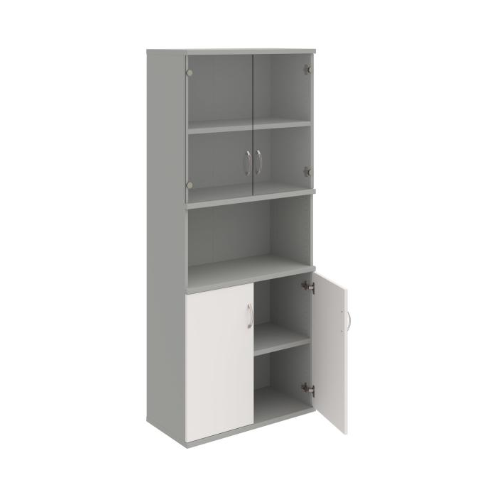 Kombinovaná skriňa - dvere/nika. Kancelárske skrine STRONG majú robustnú konštrukciu a vyššiu nosnosť políc ako bežné kancelárske skrine.V ponuke sú skriňové moduly s výškou 185 cm, 111 cm alebo 74 cm a šírky 80 cm alebo 40 cm. Hĺbka všetkých modelov skriňového radu STRONG je 40 cm.Chrbát, vyrobený z 8 mm hrubých dosák, je obojstranne pohľadový, takže skrine môžete použiť ako priestorový deliaci prvok. Hrúbka samotných políc je 25 mm, čo znamená nosnosť 80 kg na 1 policu.Korpusy, dvierka a police skríň sú olepené odolnou 2mm ABS hranou, ktorá garantuje dostatočnú ochranu proti poškodeniu.