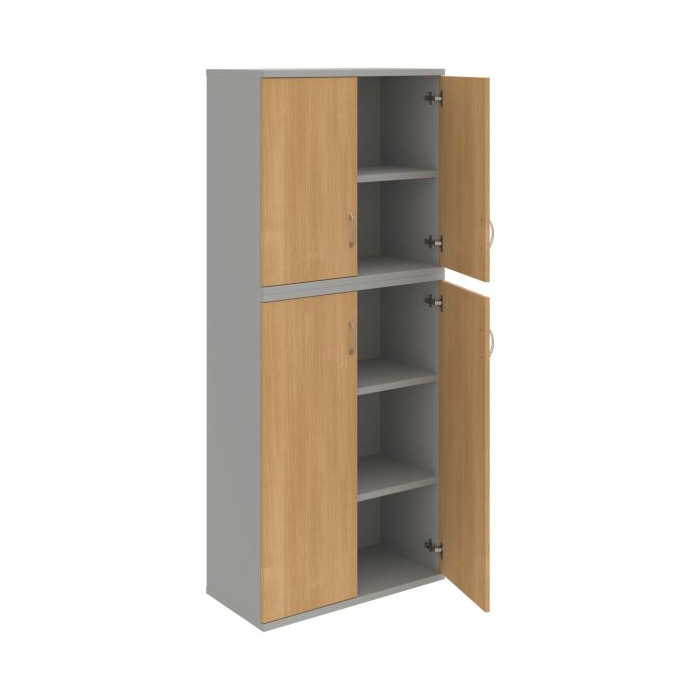 Kombinovaná skriňa - dvere/nika. Kancelárske skrine STRONG majú robustnú konštrukciu a vyššiu nosnosť políc ako bežné kancelárske skrine.V ponuke sú skriňové moduly s výškou 185 cm, 111 cm alebo 74 cm a šírky 80 cm alebo 40 cm. Hĺbka všetkých modelov skriňového radu STRONG je 40 cm.Chrbát, vyrobený z 8 mm hrubých dosák, je obojstranne pohľadový, takže skrine môžete použiť ako priestorový deliaci prvok. Hrúbka samotných políc je 25 mm, čo znamená nosnosť 80 kg na 1 policu.Korpusy, dvierka a police skríň sú olepené odolnou 2mm ABS hranou, ktorá garantuje dostatočnú ochranu proti poškodeniu.