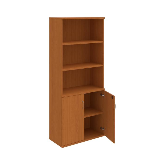 Kancelárske skrine STRONG majú robustnú konštrukciu a vyššiu nosnosť políc ako bežné kancelárske skrine.V ponuke sú skriňové moduly s výškou 185 cm, 111 cm alebo 74 cm a šírky 80 cm alebo 40 cm.Hĺbka všetkých modelov skriňového radu STRONG je 40 cm.Chrbát, vyrobený z 8 mm hrubých dosák, je obojstranne pohľadový, takže skrine môžete použiť ako priestorový deliaci prvok. Hrúbka samotných políc je 25 mm, čo znamená nosnosť 80 kg na 1 policu.Korpusy, dvierka a police skríň sú olepené odolnou 2mm ABS hranou, ktorá garantuje dostatočnú ochranu proti poškodeniu.