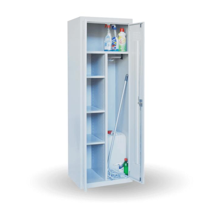 Skriňa je veľmi praktickou pomôckou pre upratovačky, je ideálne miesto na ukladanie čistiacich prostriedkov. Vnútorný priestor skrine je prakticky rozdelený, je možné v ňom ukladať metlá, prostriedky na umývanie podlahy, vedrá, pričom je dostatok miesta aj pre čistiace prostriedky.