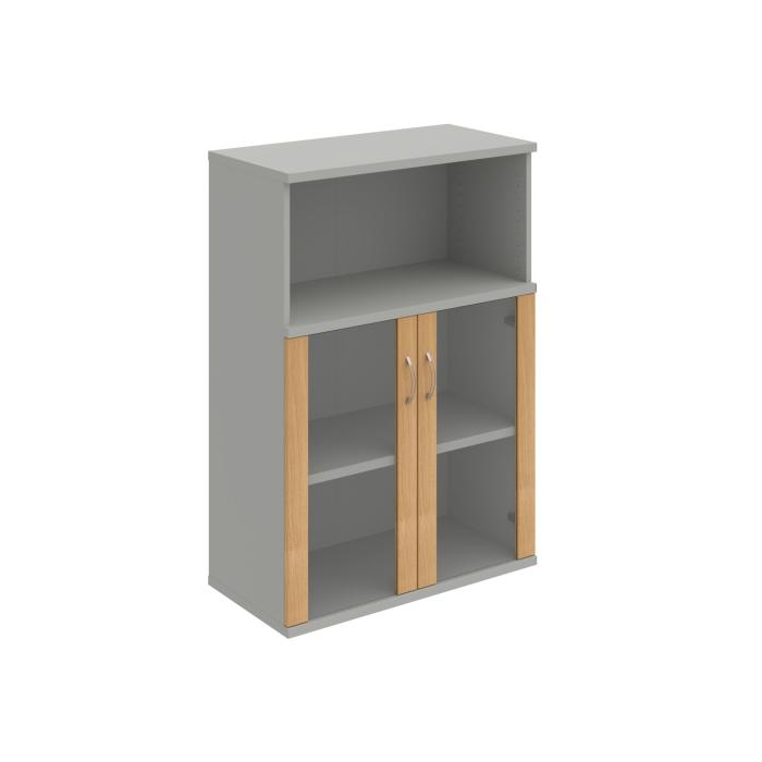 Kombinovaná skriňa - dvere/nika. Kancelárske skrine STRONG majú robustnú konštrukciu a vyššiu nosnosť políc ako bežné kancelárske skrine.V ponuke sú skriňové moduly s výškou 185 cm, 111 cm alebo 74 cm a šírky 80 cm alebo 40 cm. Hĺbka všetkých modelov skriňového radu STRONG je 40 cm.Chrbát, vyrobený z 8 mm hrubých dosák, je obojstranne pohľadový, takže skrine môžete použiť ako priestorový deliaci prvok. Hrúbka samotných políc je 25 mm, čo znamená nosnosť 80 kg na 1 policu.Korpusy, dvierka a police skríň sú olepené odolnou 2mm ABS hranou, ktorá garantuje dostatočnú ochranu proti poškodeniu.