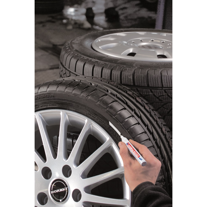 Popisovač pneumatík a gumených povrchov. Permanentný atrament so slabým zápachom. Okrúhly hrot, šírka stopy 2 - 4 mm. Väčšie balenie 10 ks.