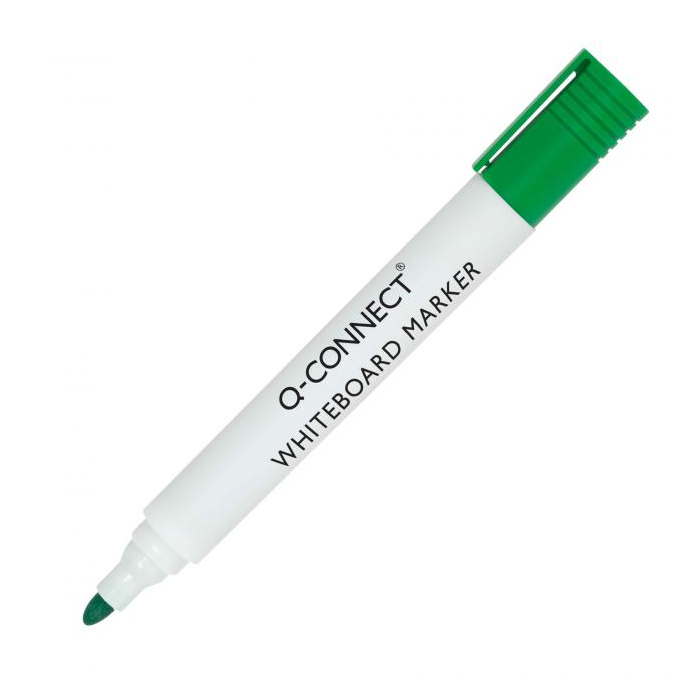 Popisovač na biele tabule. Telo plastové, klip. Hrot okrúhly, šírka stopy 1,5 - 3 mm. Väčšie balenie 10 ks v jednej farbe. Farba zelená.