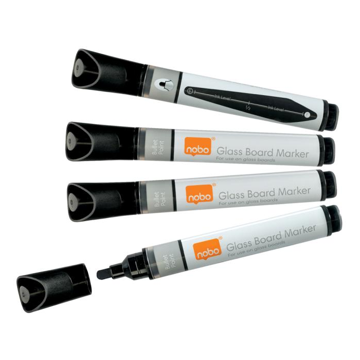 Popisovače Nobo na sklenené tabule s okrúhlym hrotom, balenie 4 ks, čierne