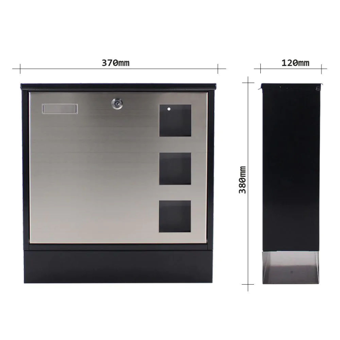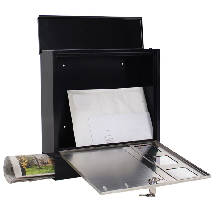 Nerezová poštová schránka Design ponúka zaujímavú kombináciu čiernej farby a nerezového materiálu. Disponuje klasickym cylindrickým zámkom, korpusom z pozinkovaného plechu a dvierkach z nerezového materiálu. Horný vhod so strieškou pre zamedzenie vnikania vody a nečistôt do vnútra poštovej schránky. Pod horným vhodom nájdeme menovku a 3 priehľadné okienka. Rýchlo a jednoducho tak budete vidieť, či už vaša pošta dorazila. Výhodou poštovej schránky Design je samostatný box na noviny a inú dennú tlač. Všetko tak bude pekne roztriedené už pri doručení. Poštovú schránku upevníte pomocou otvorov na zadnej strane a priloženého materiálu v balení.