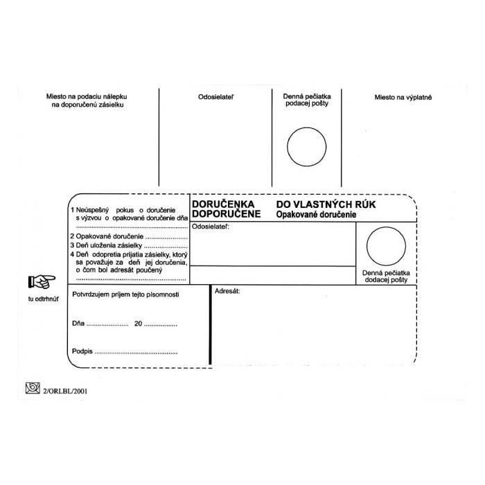 Poštové obálky B6 doručenka do VR OD, Doposielať, olizové 1000 ks