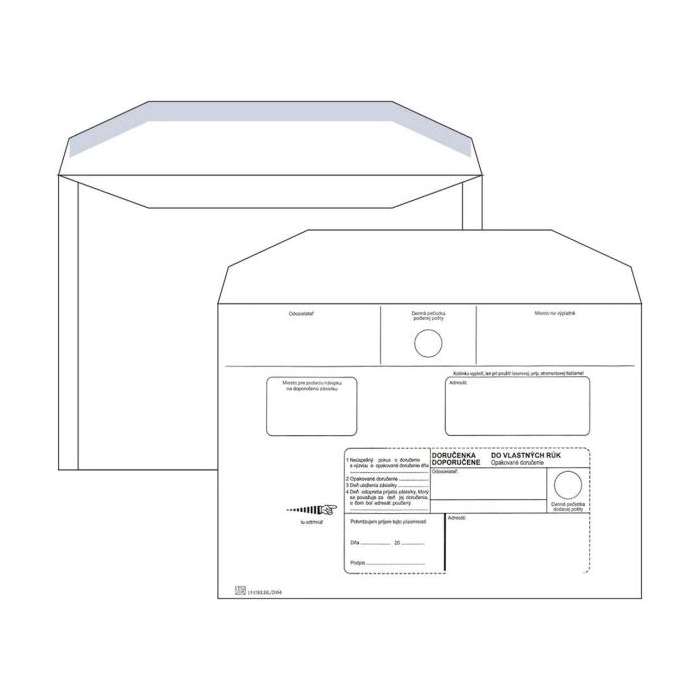 Biele papierové obálky rozmerov 162 × 229 mm s okienkom, popisom a lichobežníkovou klopou, olizové, 80 g/ m. Balenie obsahuje 1000 ks.
