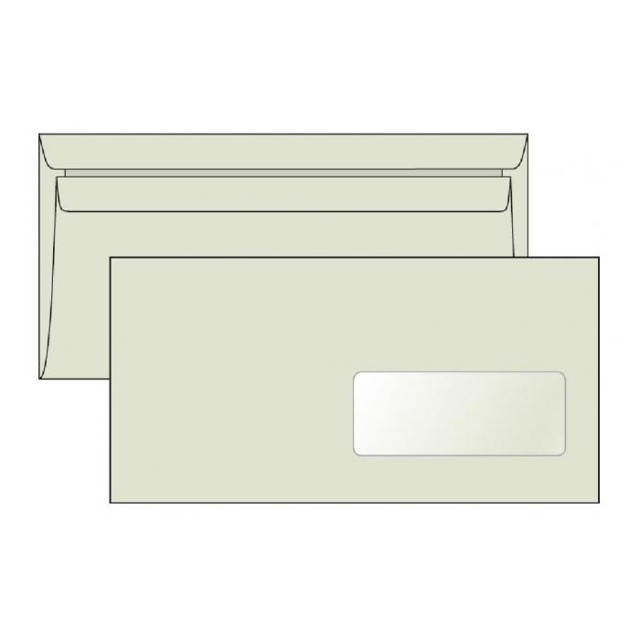 Obálky DL + okienko 110x220 mm vyrobené zo 100 % recyklovaného papiera 80 g LETTURA samolepiace. Balenie obsahuje 1000 ks. Rozmer okienka 42x104mm (zprava 15mm zdola 28mm).