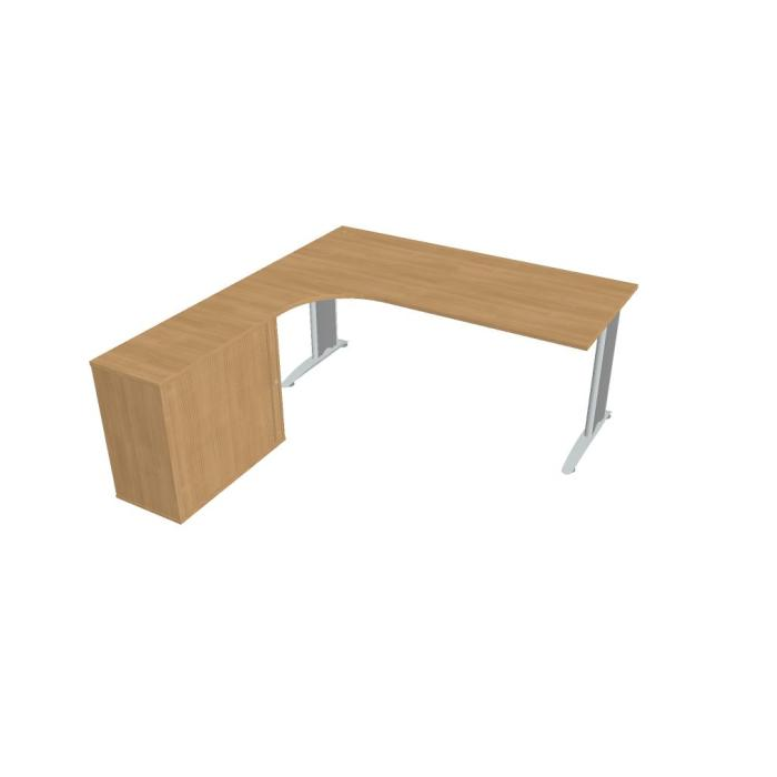 Pracovný stôl Flex, ergo, pravý, 180x75,5x200,0 (40x80) cm, dub/kov
