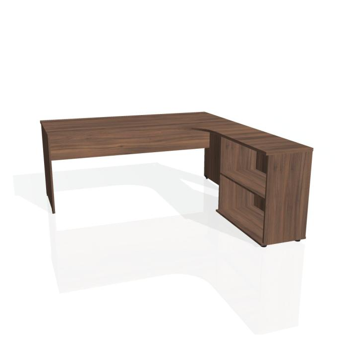 Pracovný stôl Gate, ergo, ľavý, 180x75,5x200 cm, orech/orech