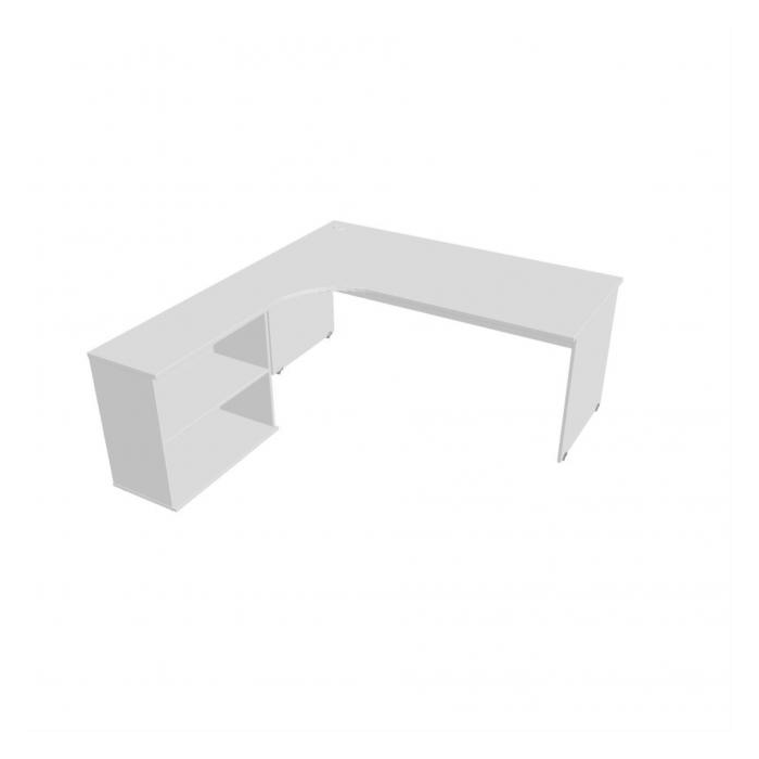 Pracovný stôl Gate, ergo, pravý, 180x75,5x200 cm, biela/biela