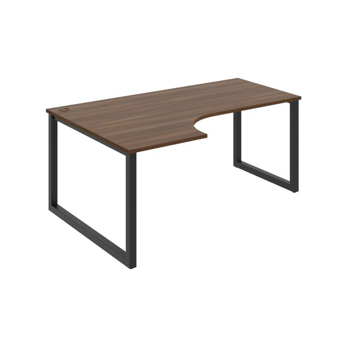 Pracovný stôl UNI O, ergo, pravý, 180x75,5x120 cm, orech/čierna