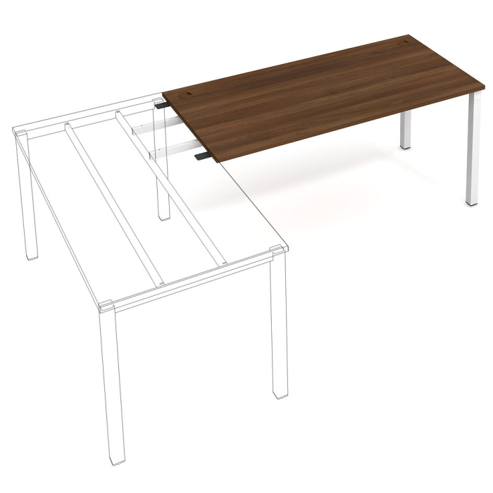 Rezací pracovný stôl rovný. Doska stola z kvalitného lamina. Pevná kovová konštrukcia podnožia zo štvorcových profilov 50 x 50 mm je tvorená kompaktnými pármi nôh, ktoré sú spojené priečnikmi. Výškovo nastaviteľná rektifikácia zaisťuje možnosť dorovnania prípadnej nerovnosti podlahy až o 1,5 cm. Stolová pracovná doska z LTD má hrúbku 25 mm a je zakončená 2mm hranou ABS, ktorá ju chráni pred poškodením. Samozrejmosťou sú káblové priechodky a systém pre zavesenie káblov pod stolovou doskou. Možnosť objednania bieleho či sivého prevedenia podnožia. Stolové doplnky, kontajnery a skrine vyberajte z ponuky kancelárskeho nábytku Hobis. Aby sa zásielka dostala v poriadku až do Vašej kancelárie, dodávame stoly demontované v niekoľkých samostatných a bezpečne zabalených škatuliach. Súčasťou každého balenia je tiež prehľadný návod. Na stoly UNI sa vzťahuje záruka 5 rokov. Farebnosť je ilustratívna.