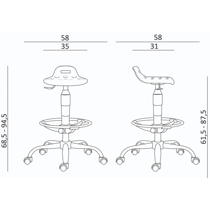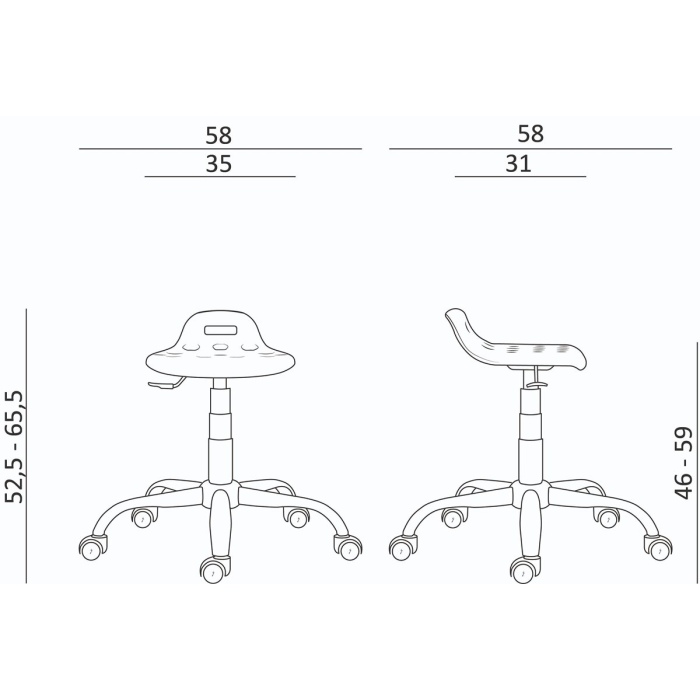 Pracovný polyuretánový taburet s predĺženým sedákom a úchytom.