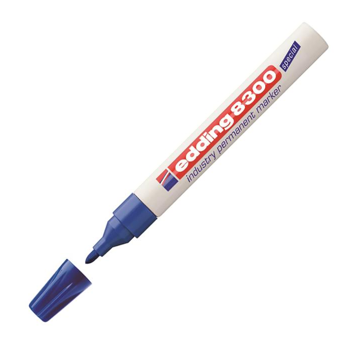 Permanentný popisovač určený predovšetkým na priemyslové použitie, pretože je obzvlášť vhodný na popisovanie mierne mastných a zaprášených povrchov. Rýchloschnúci atrament na báze xylénu je vysoko odolný voči oderu, vode, svetlu a má vynikajúce krycie vlastnosti. Okrúhly hrot. Šírka stopy 1,5-3 mm. Farba: modrá.