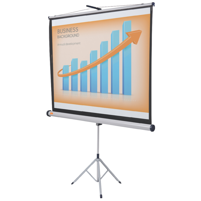 Široká škála veľmi kvalitných, univerzálnych projekčných plátien na trojnohom stojane. Žiarivý matne biely povrch plátna s čiernym okrajom zaručuje ostrý, podrobný obraz, ktorý zreteľne uvidia všetci diváci. Dá sa ľahko zasunúť do puzdra, aby bolo chránené pred poškodením. 1500 × 1000 mm.