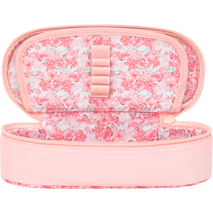 Vodeodolná polyesterová tkanina, kvetinová podšívka vo vnútri puzdra. Klopa s integrovaným vreckom a pútkami na pero. Hlavné vrecko na zips. Rozmery 23,5 x 8,5 x 5 cm.