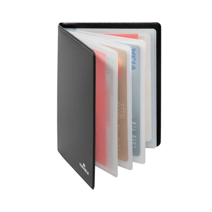 Ochranné puzdro na 8 kreditných kariet s ochranou proti neoprávnenému čítaniu osobných údajov. Vnútorné rozmery 86 × 54 mm, vonkajšie rozmery 102 × 75 mm. Farba čierna.
