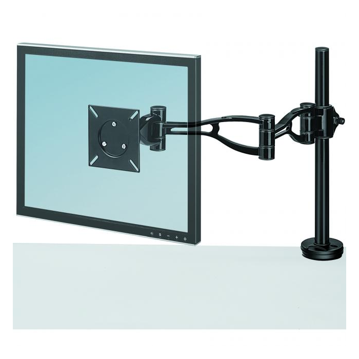 Rameno s možnosťou otáčania do 360 ° a vertikálnym nastavením sklonu v rozpätí +37 až -37 °. Optimálne nastavenie výšky v 4 fixačných výškových polohách. Vhodné pre monitory do 32` s hmotnosťou do 10 kg. Úchyt na hranu stola. Ľahká montáž pomocou 2 svoriek.