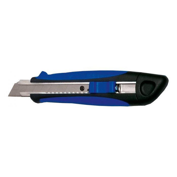 Profesionálny rezač na intenzívne rezacie práce. Úchyt vyrobený z príjemného materiálu pre lepší komfort a ovládanie. Šírka čepele 18 mm. V balení 2 náhradné čepele. Farba modrá/čierna.