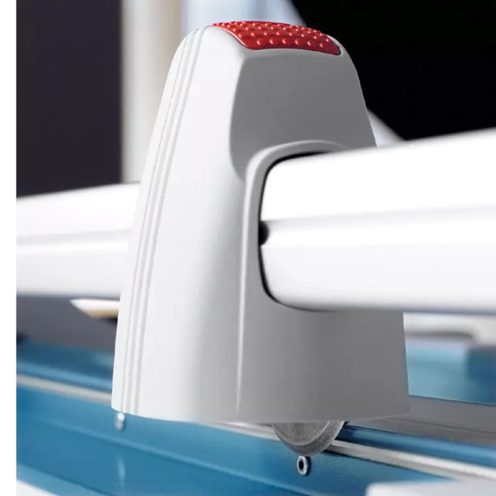 Profesionálna rezačka so stabilnou kovovou základňou s protišmykovými gumenými nožičkami a presným rezom na grafické účely (filmy, fólie, papier). Kvalita na dosiahnutie najvyššej presnosti - automatický prítlak pohybom rezacej hlavy, nastaviteľný zadný doraz s použitím na oba boky, množstvo zakreslených orientačných DIN formátov. Kruhový nôž umiestnený v plastovom ochrannom kryte sa automaticky brúsi pri rezaní o protinôž (oba nože z tvrdenej ocele). Mierka v cm/inch. Možnosť montáže na stenu.