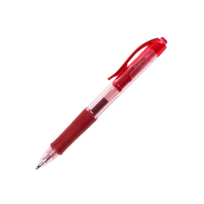 Klikací roller s robustnejším transparentným telom a gumeným úchytom. Farba tela vo farbe náplne. Guľôčka 0,7 mm, širka stopy 0,5 mm. Väčšie balenie 12 ks. Farba: červená