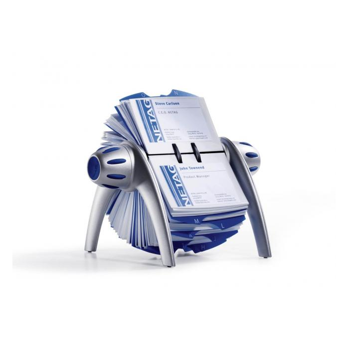Rotačný stolový vizitkár na 400 vizitiek VISIFIX Flip VEGAS strieborný/modrý