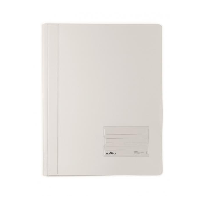 Elegantný rýchloviazač z farebného PVC a plastovým zakladacím viazačom. Priehľadné vrecko vo formáte vizitky (90 x 57 mm) na prednom obale a vnútorné vrecko na zadnej strane. Extra široký, vhodný aj na euroobaly. Väčšie balenie 25 ks. V kombinácii so zakladacím pásikom obj. kód DU2996 02 je možné archivovať rýchloviazač v zakladači.