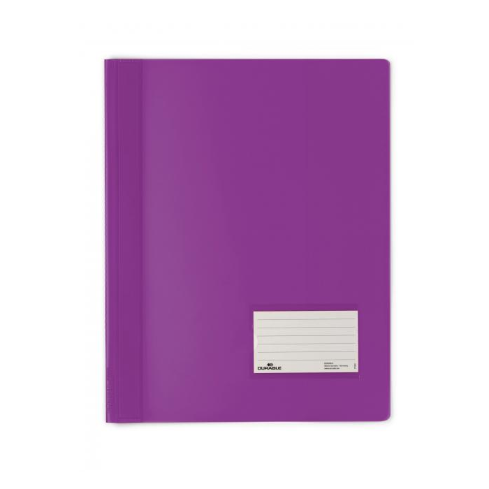 Elegantný rýchloviazač z farebného PVC a plastovým zakladacím viazačom. Priehľadné vrecko vo formáte vizitky (90 x 57 mm) na prednom obale a vnútorné vrecko na zadnej strane. Extra široký, vhodný aj na euroobaly. Väčšie balenie 25 ks. V kombinácii so zakladacím pásikom obj. kód DU2996 02 je možné archivovať rýchloviazač v zakladači. Farba: svetlofialová