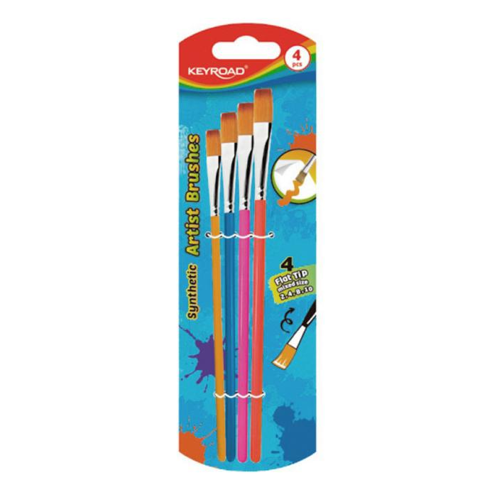 Sada plochých štetcov KEYROAD, blister 4 ks, mix farieb