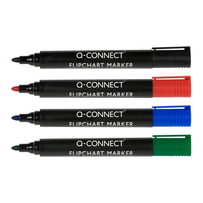 Popisovač na flipchartový papier. Okrúhly hrot. Šírka stopy 1,5-3 mm. Sada 4 farieb, čierna, modrá. červená a zelená.
